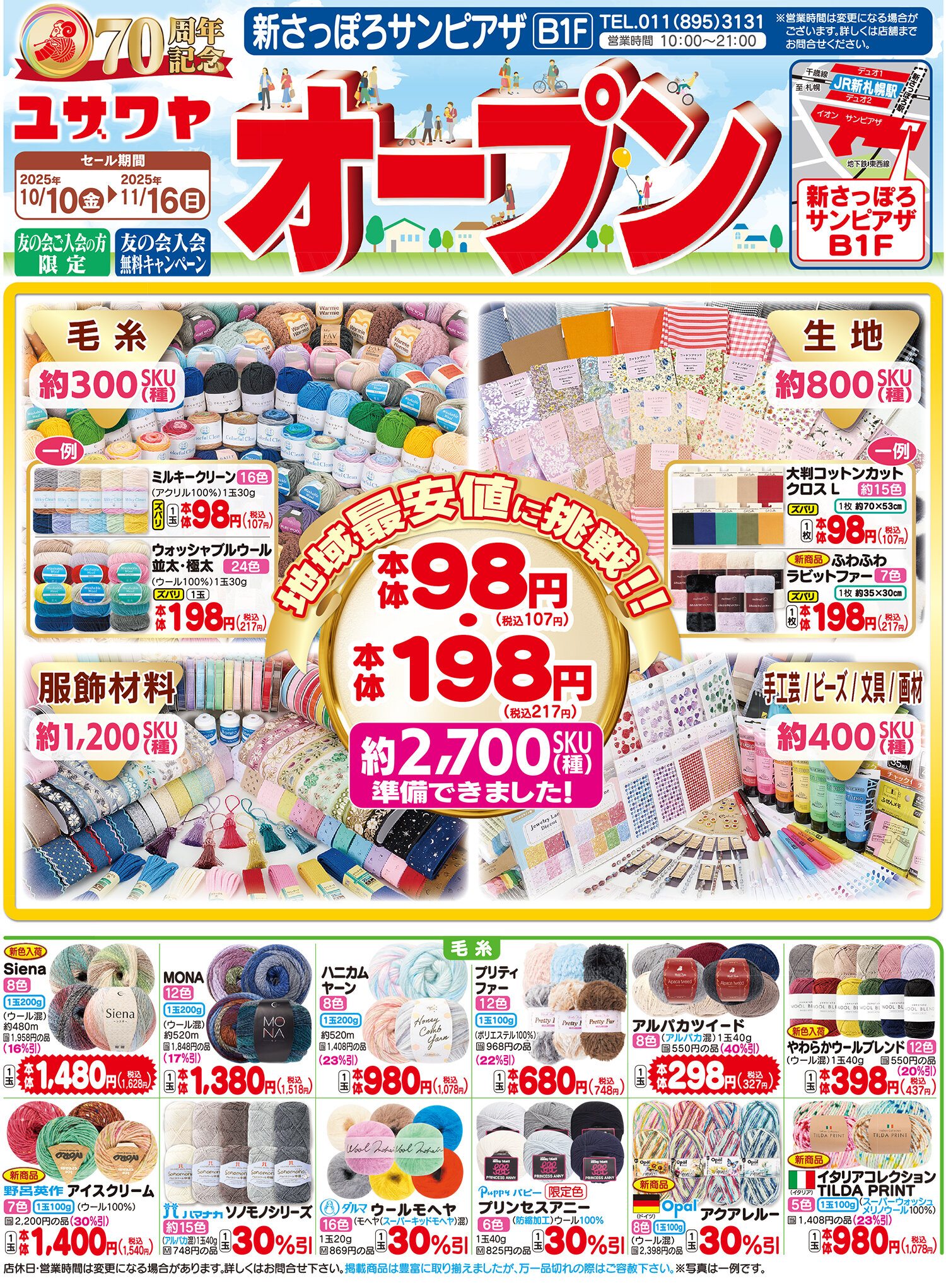 2025年10月10日(金)、新さっぽろサンピアザ 地下1階にユザワヤがオープン!